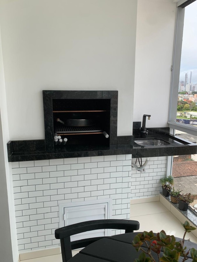- sacada gourmet com fechamento heiki,churrasqueira e pia com agua quente