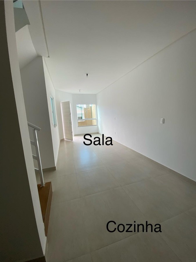 Excelente Sobrado a 200 metros da Praia do Quilombo no Centro de Penha, de 102m2, com 02 suítes, uma com sacada, sala e cozinha conjugada, lavabo, área de serviço, garagem para 01 veículo coberta, home box, porcelanto, caixa dágua de 1000 litros, gesso no teto, espera para ar condicionado nas suítes, churrasqueira.
