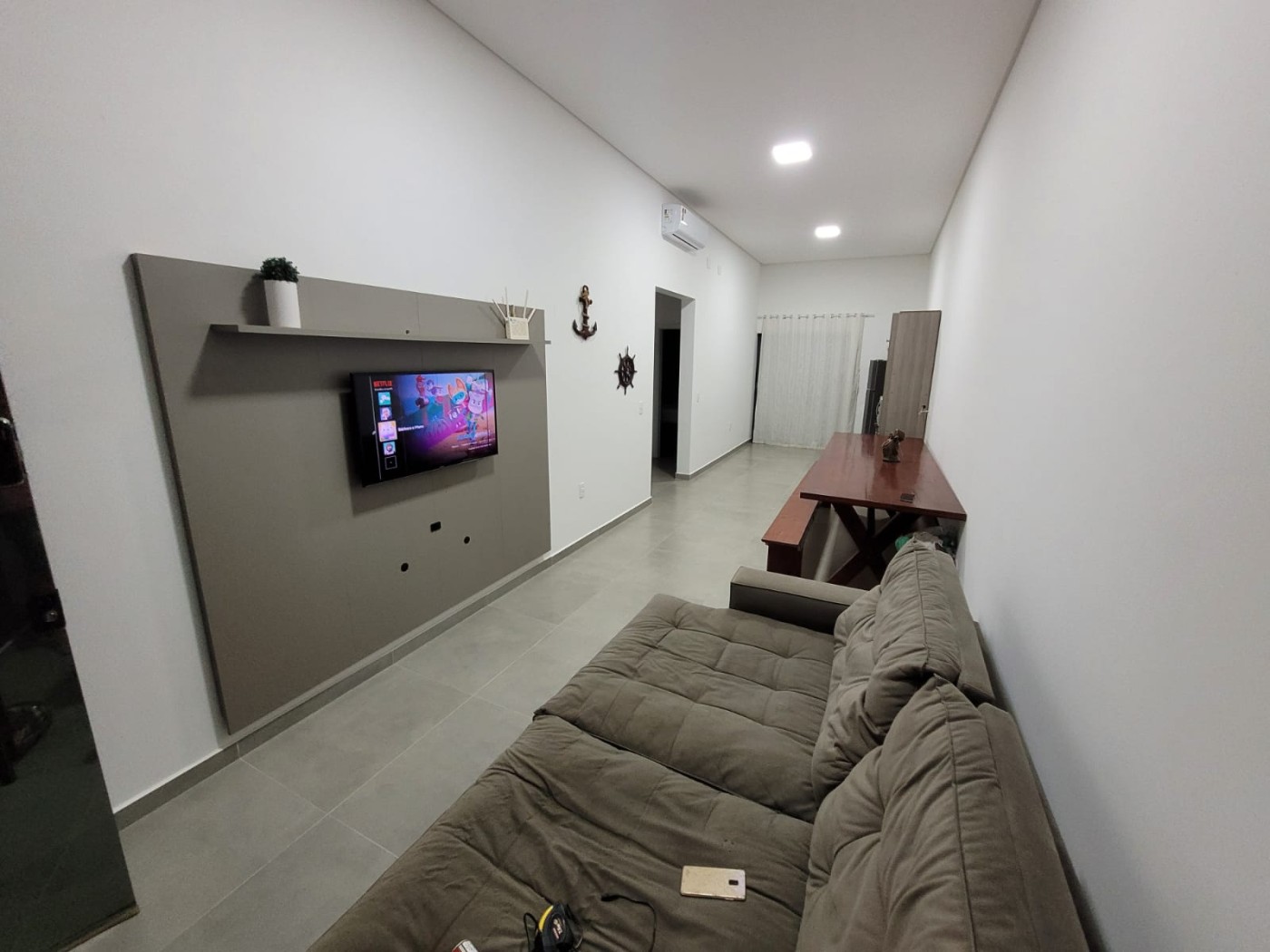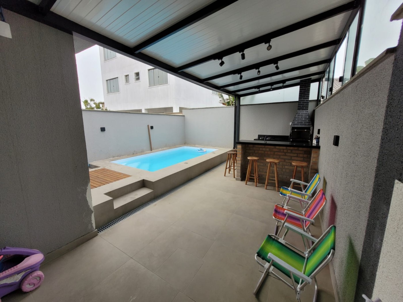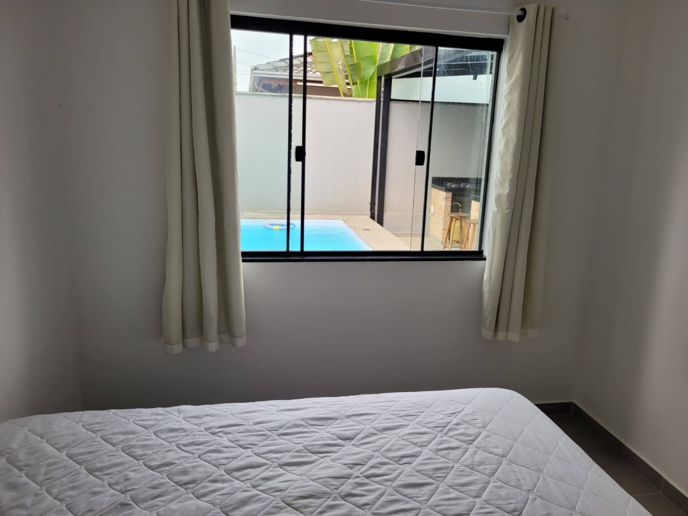 Sala e cozinha integrada, com pé direito 4metros, 02 dormitórios sendo 01 suíte, banheiro social, área de serviço, churrasqueira, amplo espaço nos fundos com área gourmet e piscina e vaga de garagem. Estrutura para segundo piso, caso tenha interesse.