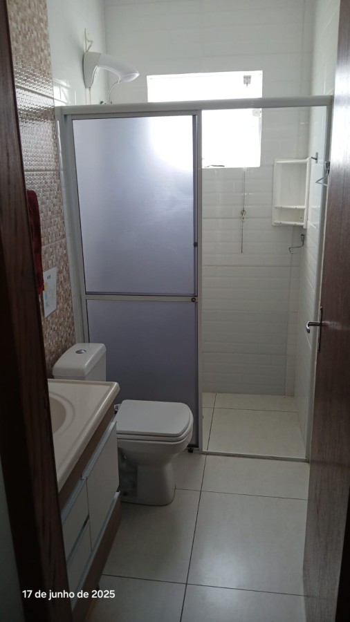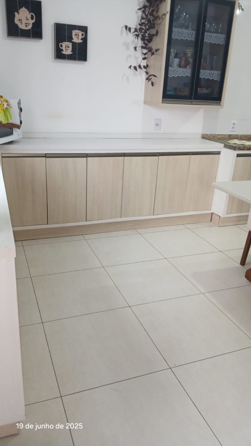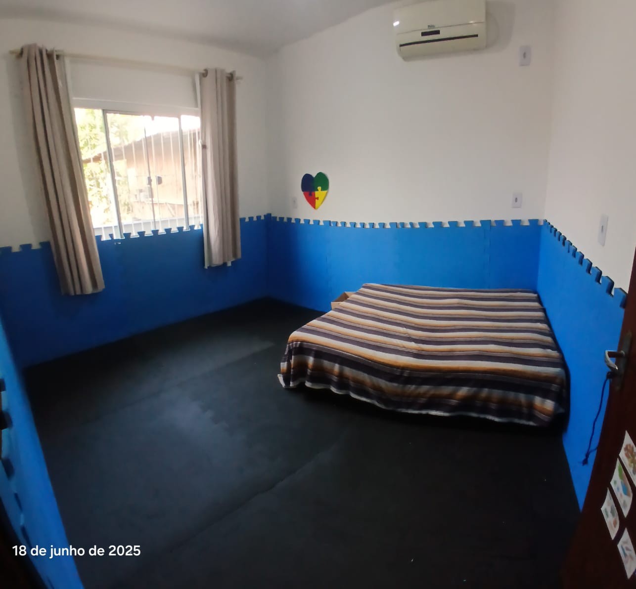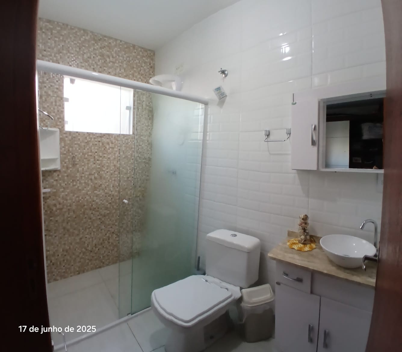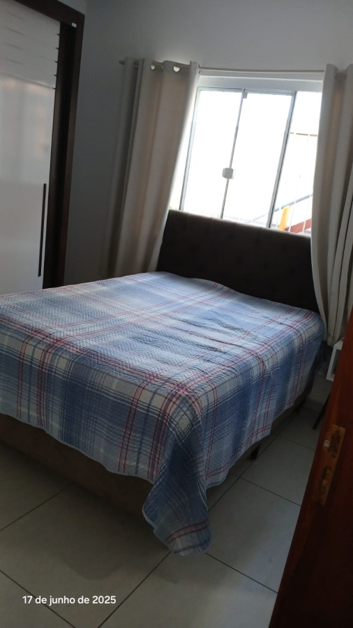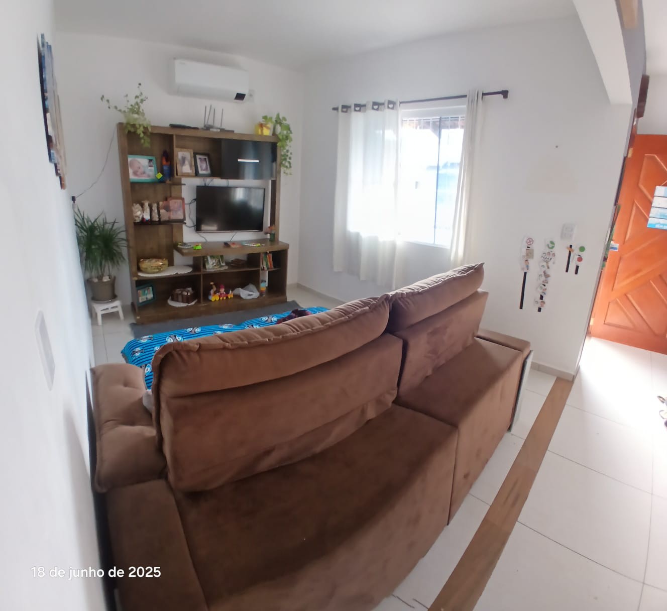Sala e cozinha integrada, 03 dormitórios sendo 01 suíte, banheiro social, área de serviço, amplo espaço nos fundos para lazer com playground de madeira, portão eletrônico, alarme, grades nas janelas e toda murada, 2 vagas de garagem coberta, casa de laje e em rua calçada.