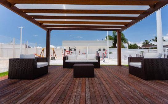 O condominio oferece 03 areas de festas, 02 quadras de areia, 01 campo de futebol,