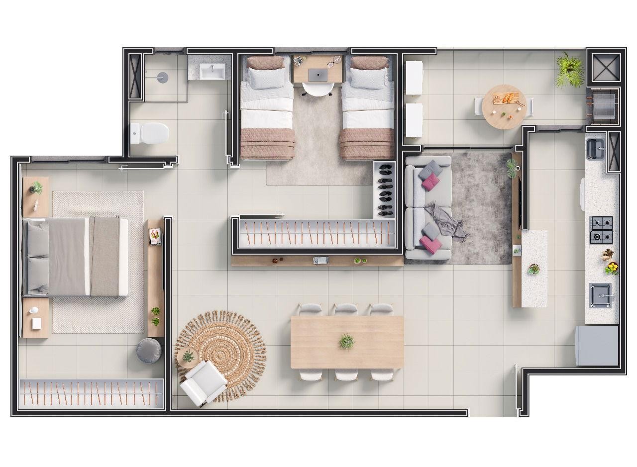 São 2 quartos, 01 vaga de cagarem coberta, sala integrada e acabamento impecável em um condomínio clube completo – piscina, espaço gourmet, salão de festas e playground. Um verdadeiro refúgio para viver ou investir com alta valorização garantida, a poucos passos do Parque Linear.