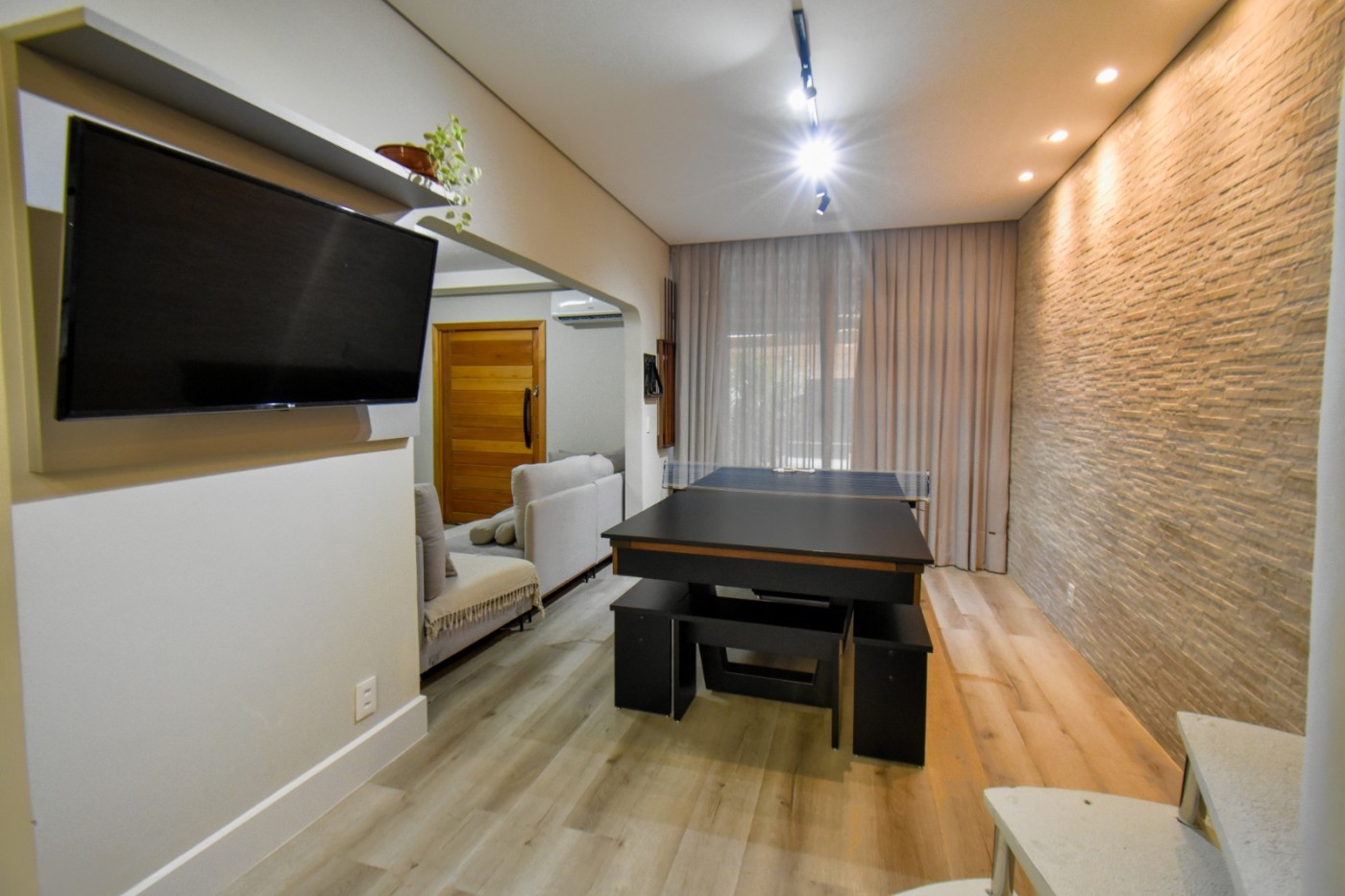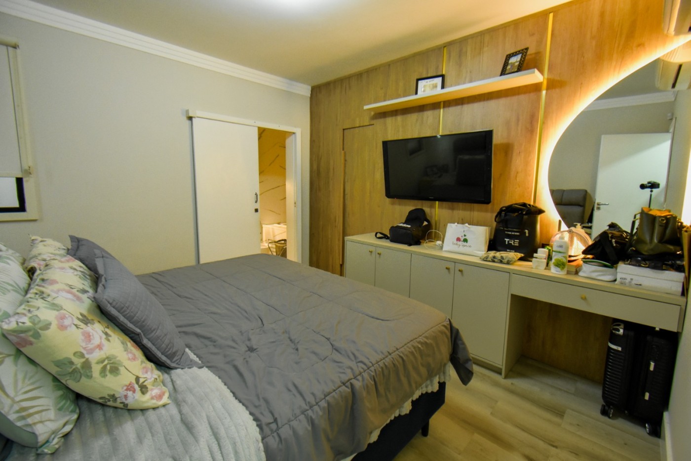Com 3 dormitórios, sendo 2 suítes, possui 4 banheiros, 3 vagas de garagem, 2 salas, encontra-se mobiliado.