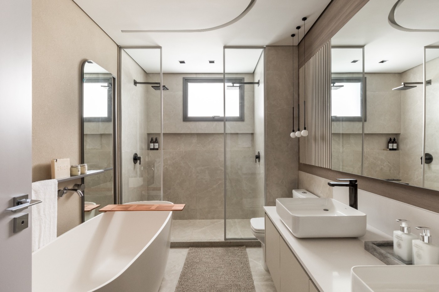 Com três dormitórios – todos suítes –, sendo uma Suíte Master generosa, e cinco banheiros, cada ambiente foi projetado para proporcionar privacidade e bem-estar.