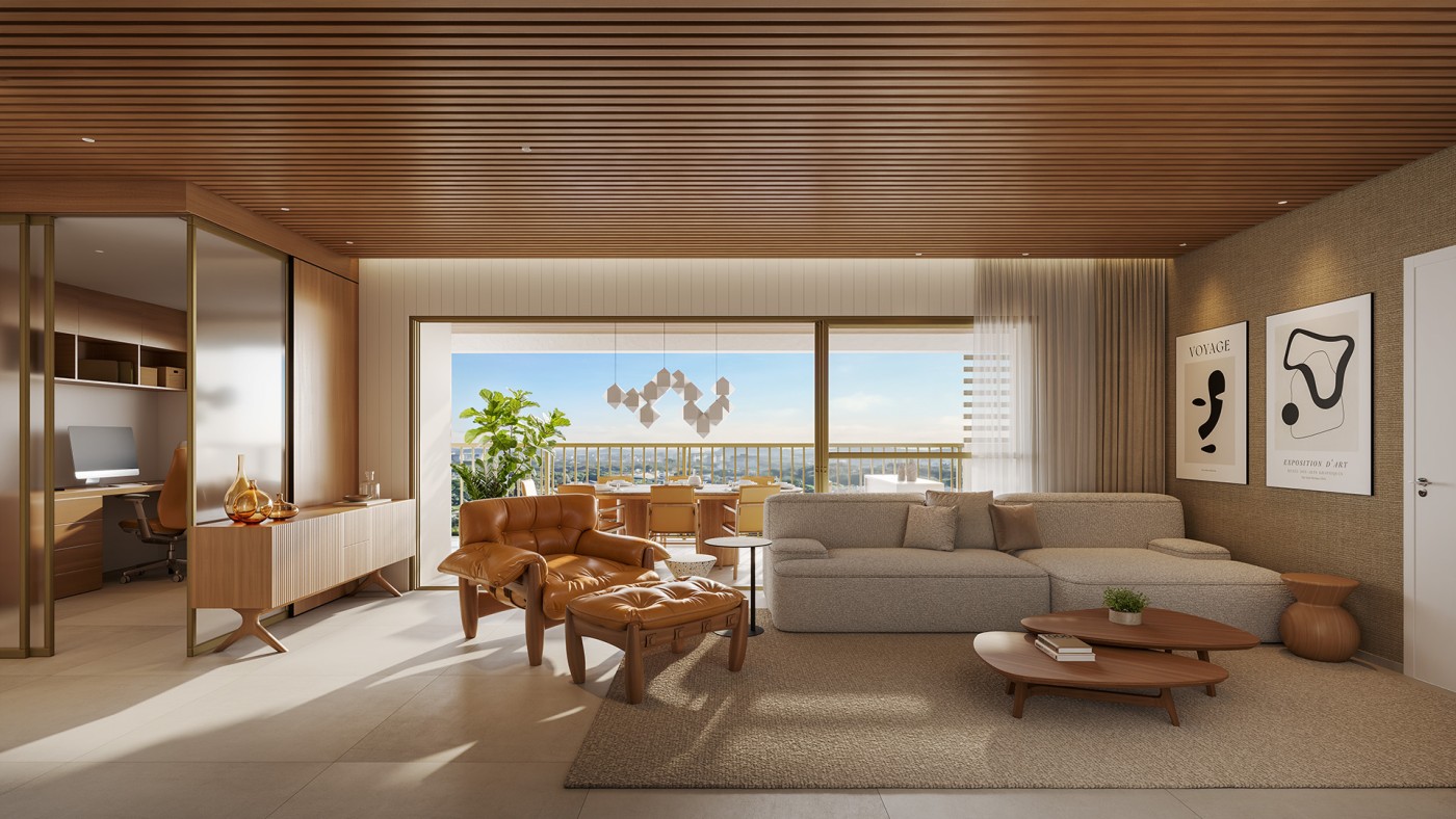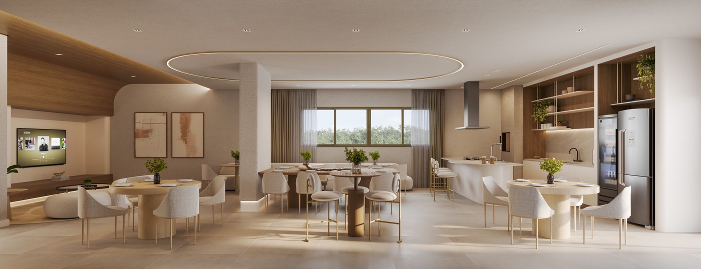 A planta inteligente favorece a integração entre sala de estar e jantar, criando um ambiente perfeito para receber amigos e cultivar momentos inesquecíveis.