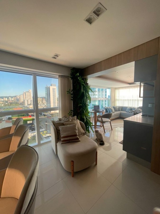 Imagine viver com a brisa do mar e o pôr do sol no horizonte todos os dias: este apartamento de 139 m² privativos, entregue em 2024, oferece 3 suítes – incluindo uma master com closet e acabamento em gesso –, 4 banheiros, lavabo, sala de estar integrada à sala de jantar e acomoda confortavelmente até 6 pessoas. Totalmente mobiliado, conta com ar condicionado, aquecimento a gás, água quente, armários embutidos em todos os dormitórios, cozinha planejada com despensa, copa e área de serviço, além de fechadura digital para máxima segurança. As janelas em esquema de vista panorâmica garantem um cenário permanente do mar, convidando a contemplar cada amanhecer.