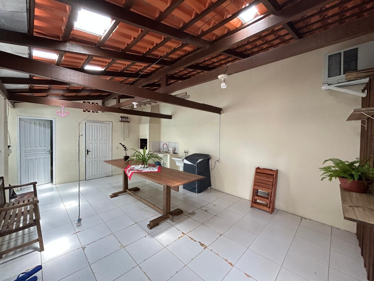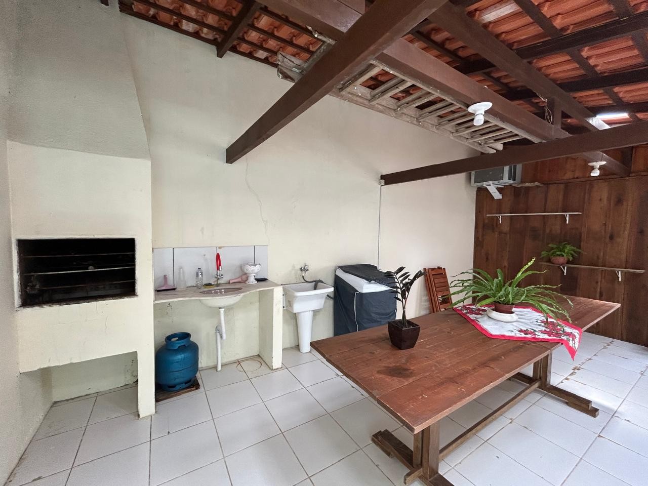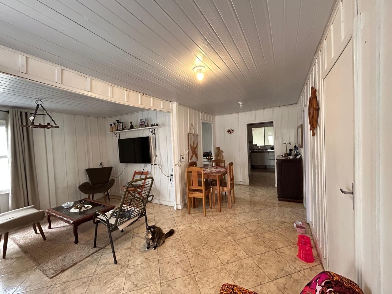 Sala e cozinha integrada, 03 dormitórios, banheiro social, amplo espaço nos fundos com área gourmet e churrasqueira e 2 vagas de garagem (sendo 1 coberta) em rua calçada.