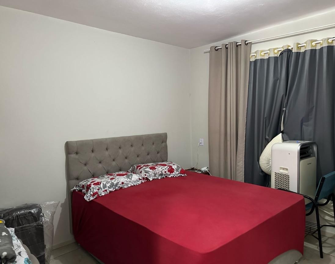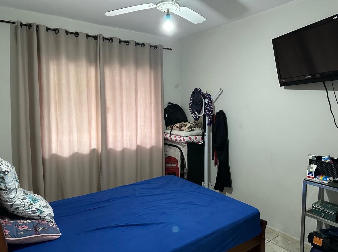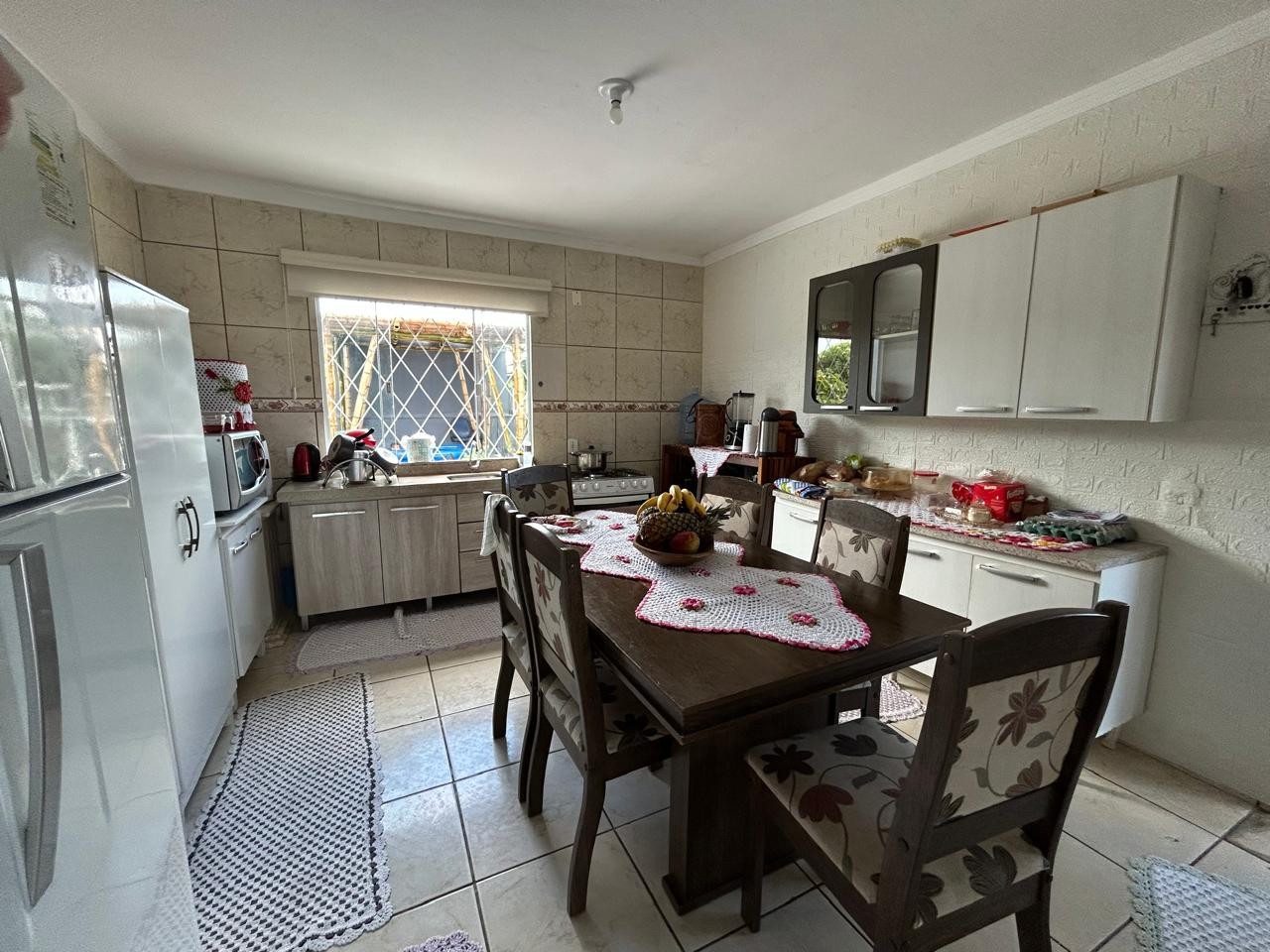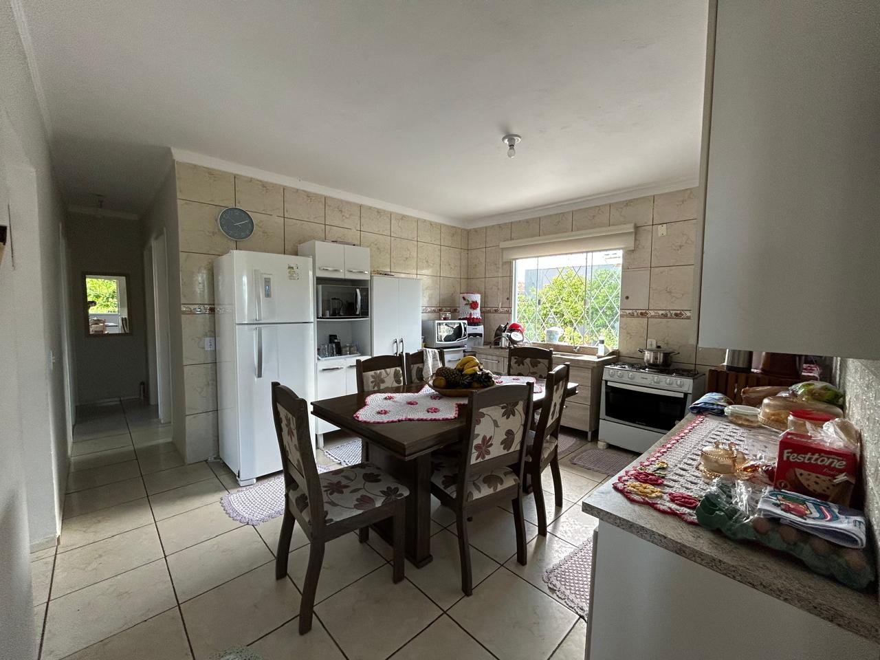 Sala e cozinha integrada, 03 dormitórios sendo 01 suíte, banheiro social, área de serviço separada na parte interna, amplo espaço nos fundos para lazer ou até mesmo instalação de piscina com edícula e churrasqueira e 2 vagas de garagem (sendo 1 coberta) em rua calçada e com grades em todas as janelas.