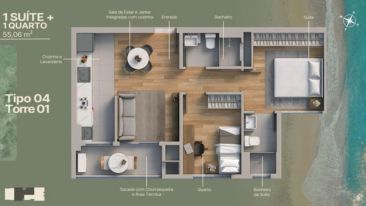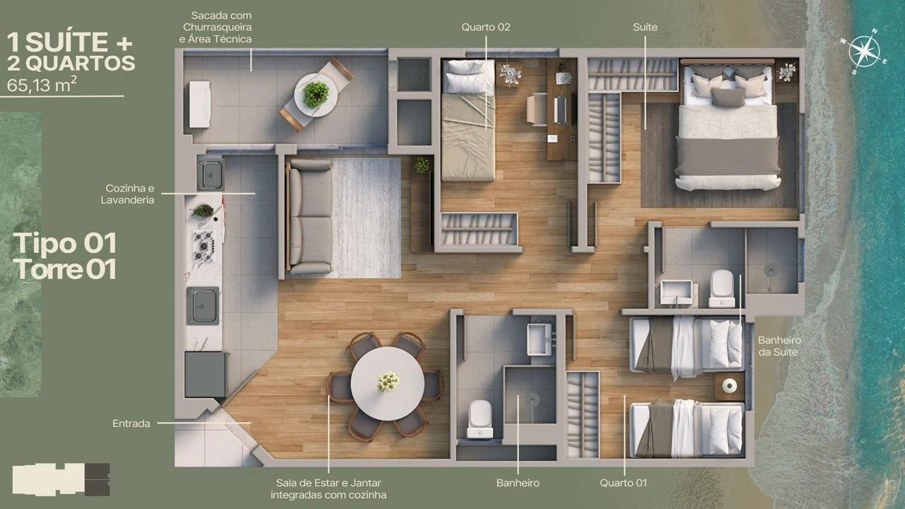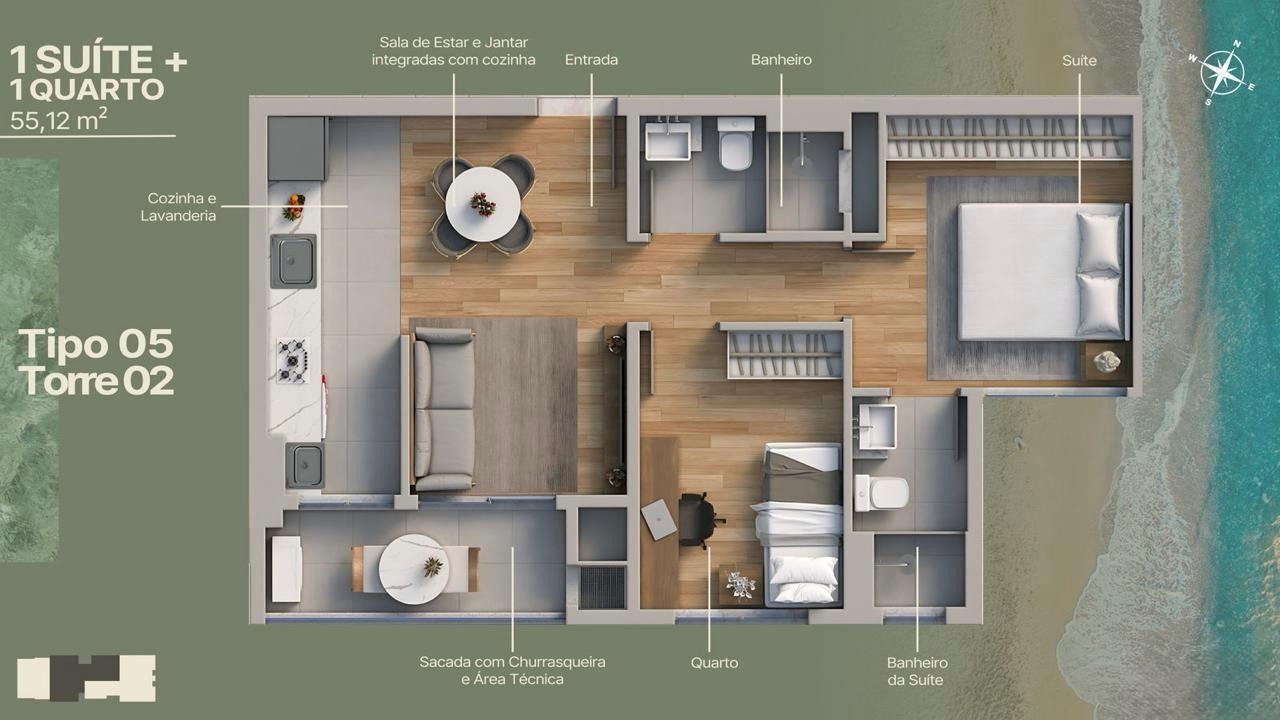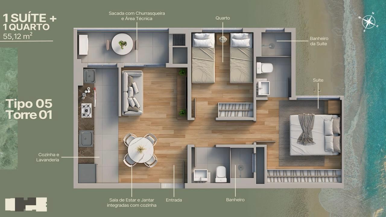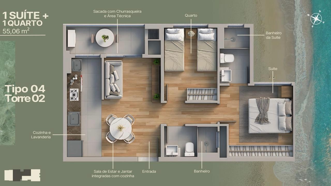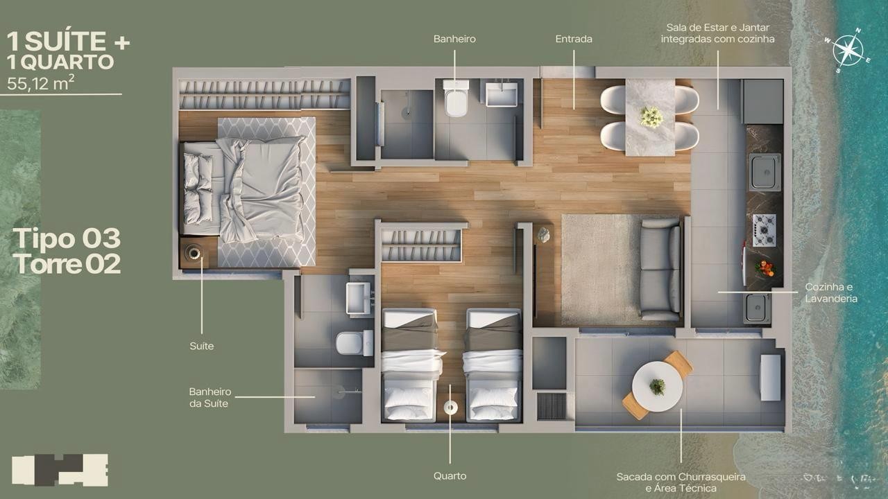 O Empreendimento possui 2 torres de 12 pavimentos com vagas cobertas e unidades de 2 e 3 quartos, de 54 a 65 m². O projeto integra living, cozinha, área de serviço e sacada com churrasqueira. Localizado no Itajuba, em Barra Velha, o empreendimento conta com elevadores, medidores individuais, captação de água, automação predial, painéis solares, pontos para veículos elétricos e acesso para PNE. A área de lazer oferece salão de festas, piscina, espaço gourmet, espaço fitness, playground, brinquedoteca, pet place, quiosque externo, solarium, piscina térmica, box de praia e entrada para banhistas. Os apartamentos incluem sala para dois ambientes, sacada técnica, banheiro social, suíte, piso cerâmico, preparo para ar-condicionado split, opções em andares altos, aceitação de pets e vistas abertas conforme a posição da unidade.
