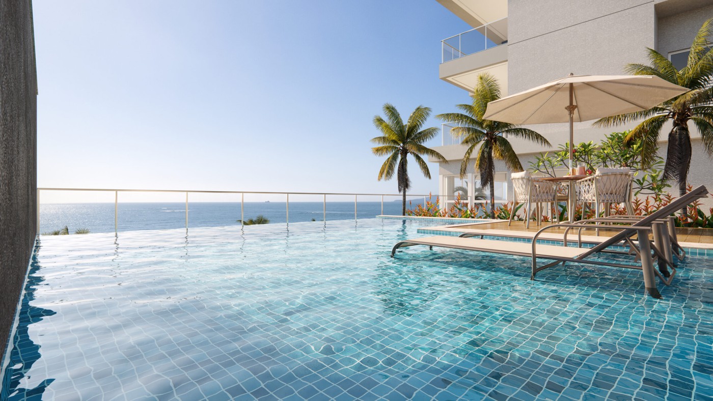 O lazer é oferecido em grande estilo: churrasqueira a carvão, piscina coletiva com raia aquecida, piscina infantil, espaço gourmet, salão de festas e sala de jogos garantem entretenimento para todas as idades. A infraestrutura ainda conta com brinquedoteca, bicicletário, bar, circuito de TV, internet e guarita de segurança 24 h, além de medidores individuais de água, luz e gás. Para quem busca momentos de descanso, a vista panorâmica e permanente do mar transforma cada pôr do sol em um espetáculo particular.