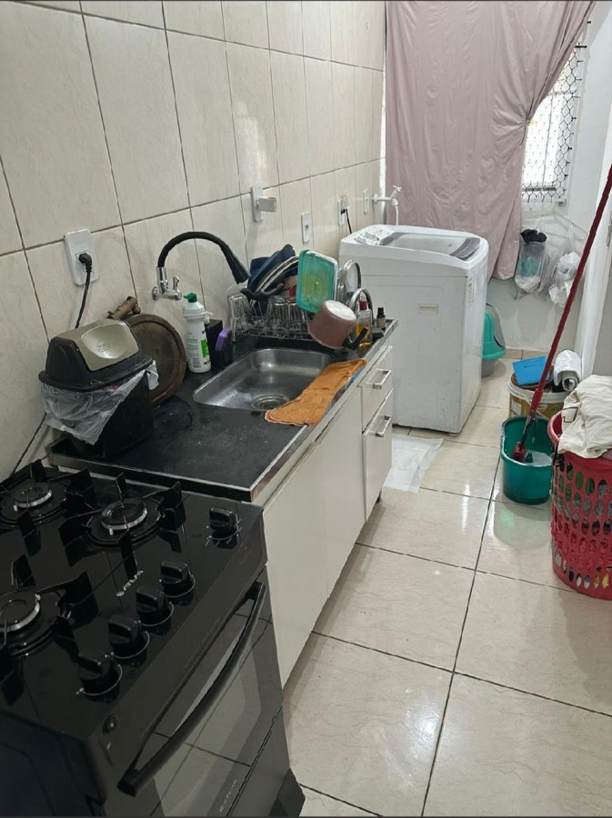 Sala e cozinha integrada, 02 dormitórios, banheiro social, área de serviço, 1 vaga de garagem individual e em rua calçada.