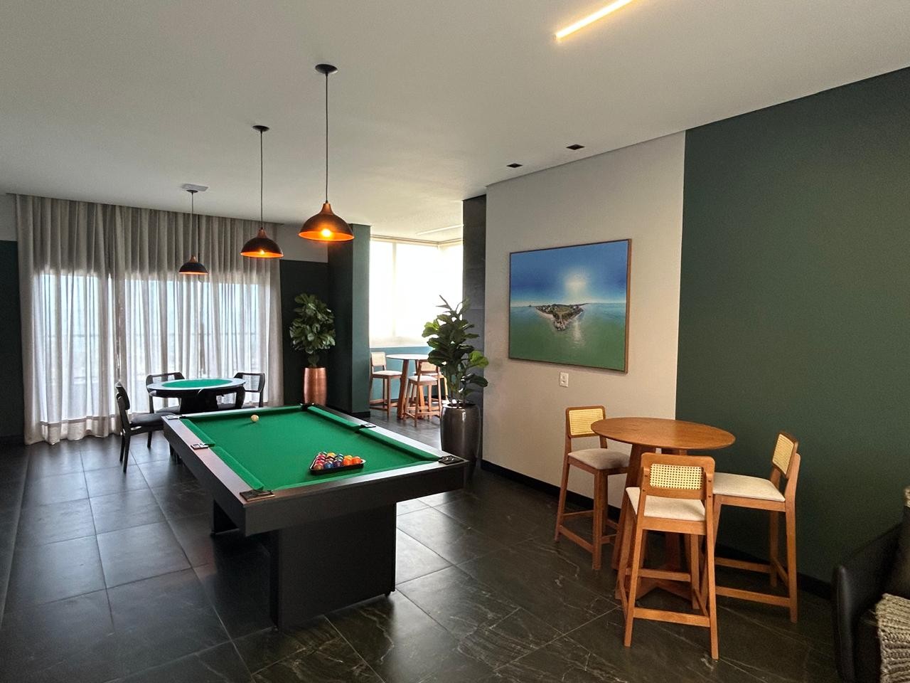 Sala e cozinha integrada, 02 dormitórios sendo 01 suíte, banheiro social, espera para split em todos os ambientes, elevador, área de serviço individual, 1 vaga de garagem coberta, com vista mar e em rua calçada. Possui uma infraestrutora de lazer magnífica, piscina no rooftop com área de festas, salão gourmet, sala de jogos, brinquedoteca e academia completa.