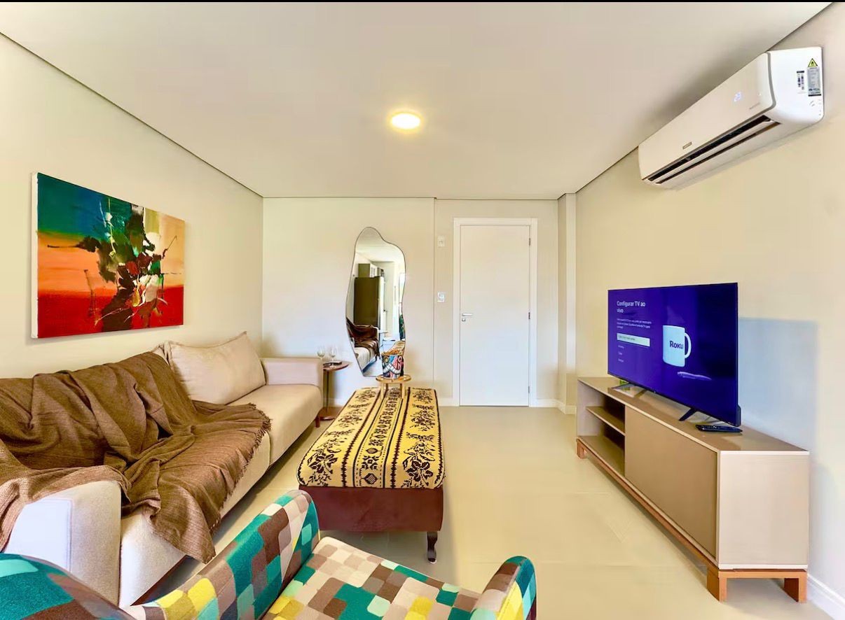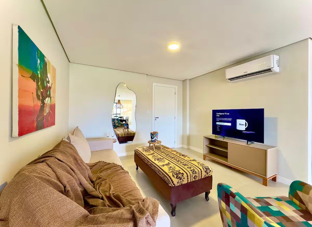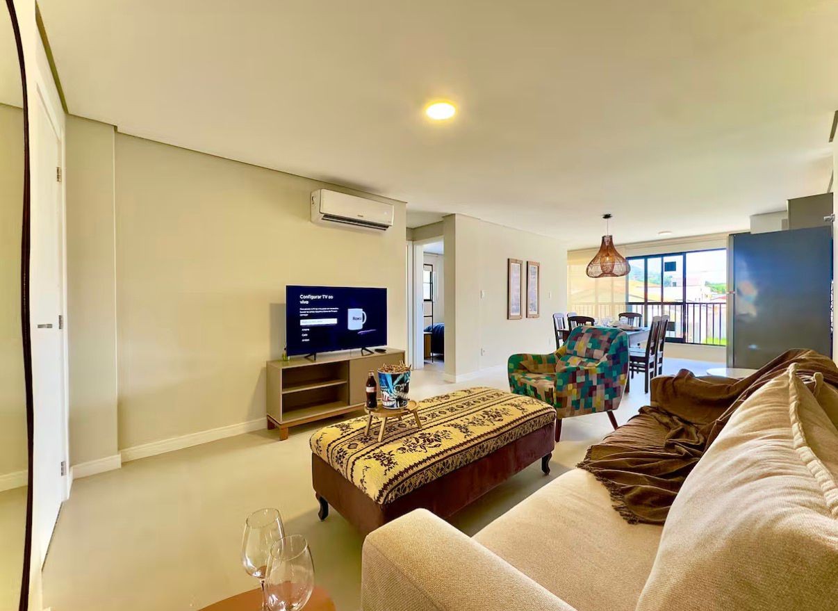 A vista para o mar em Armação é definitiva e você percebe isso logo ao entrar na sala. São 71 metros quadrados que f...