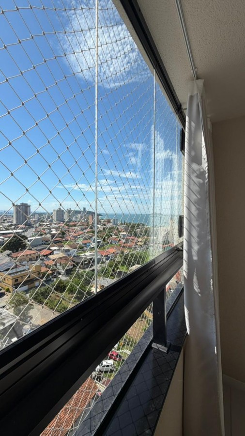 A vista para o mar em Armação é definitiva e você percebe isso logo ao entrar na sala. São 71 metros quadrados que funcionam bem porque o projeto eliminou espaços mortos. O apartamento já está mobiliado, com armários embutidos de qualidade e cozinha planejada pronta para uso imediato. O acabamento em gesso e a fechadura digital mostram o padrão da entrega de 2025. Ter duas vagas de garagem em Penha, onde o fluxo cresce a cada temporada, garante a liquidez do patrimônio.