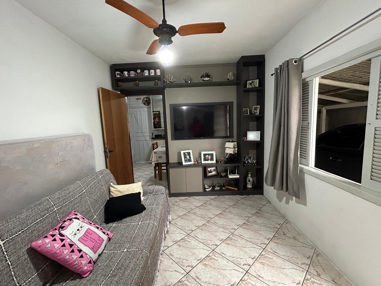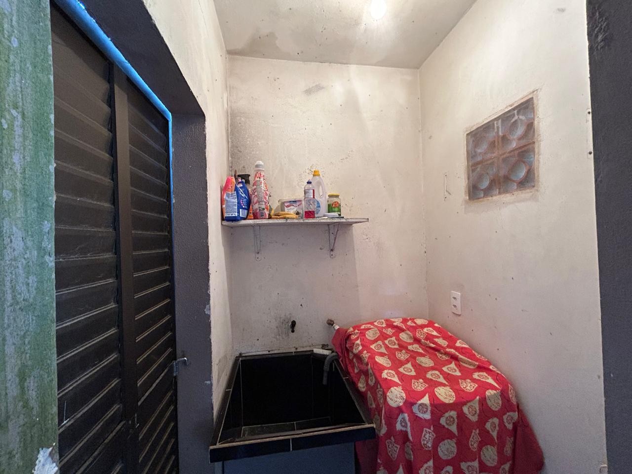 Sala e cozinha integrada, 01 dormitório, banheiro social, despensa e 2 vagas de garagem coberta, na área externa possui 1 banheiro e área de serviço, amplo espaço livre com árvores e todo murado.