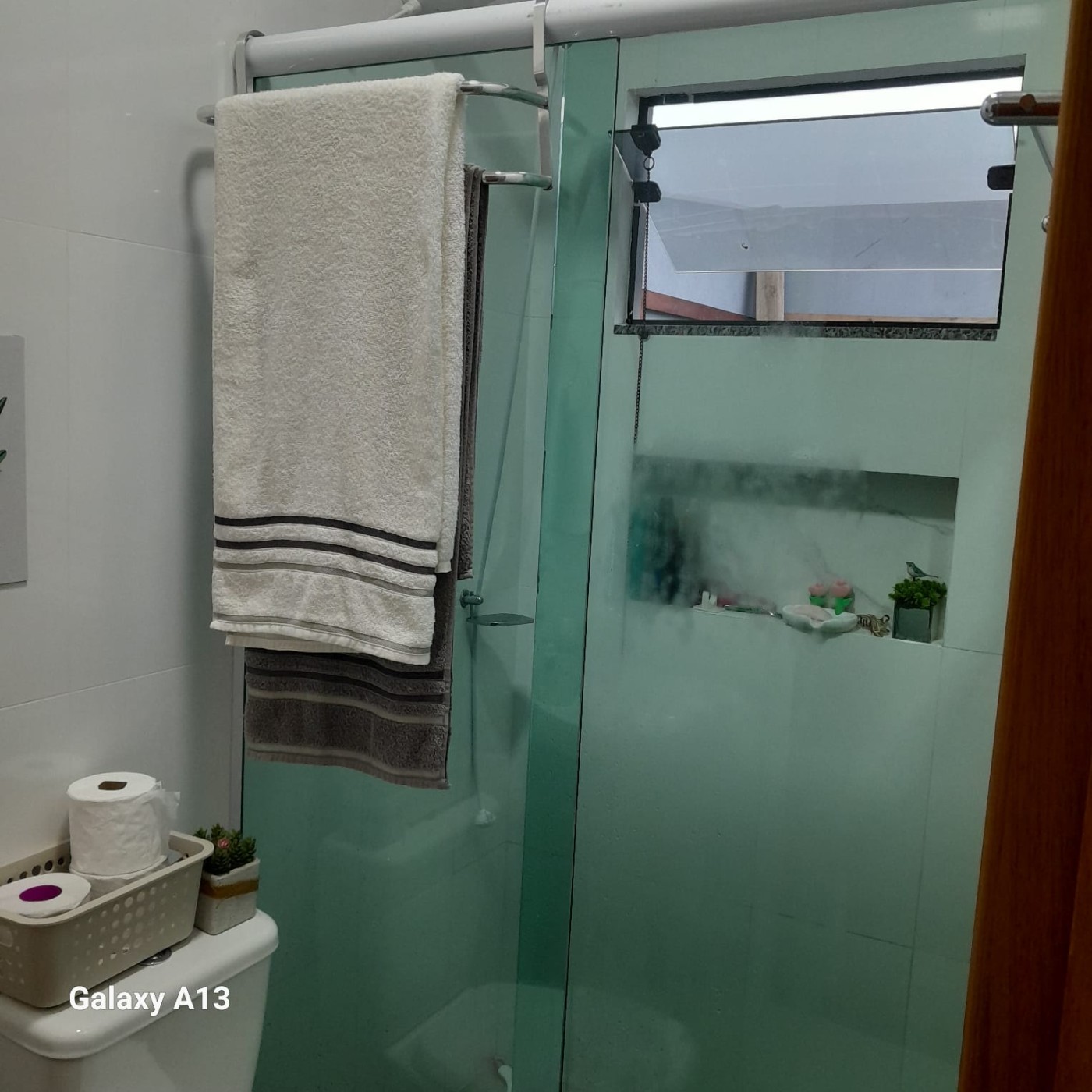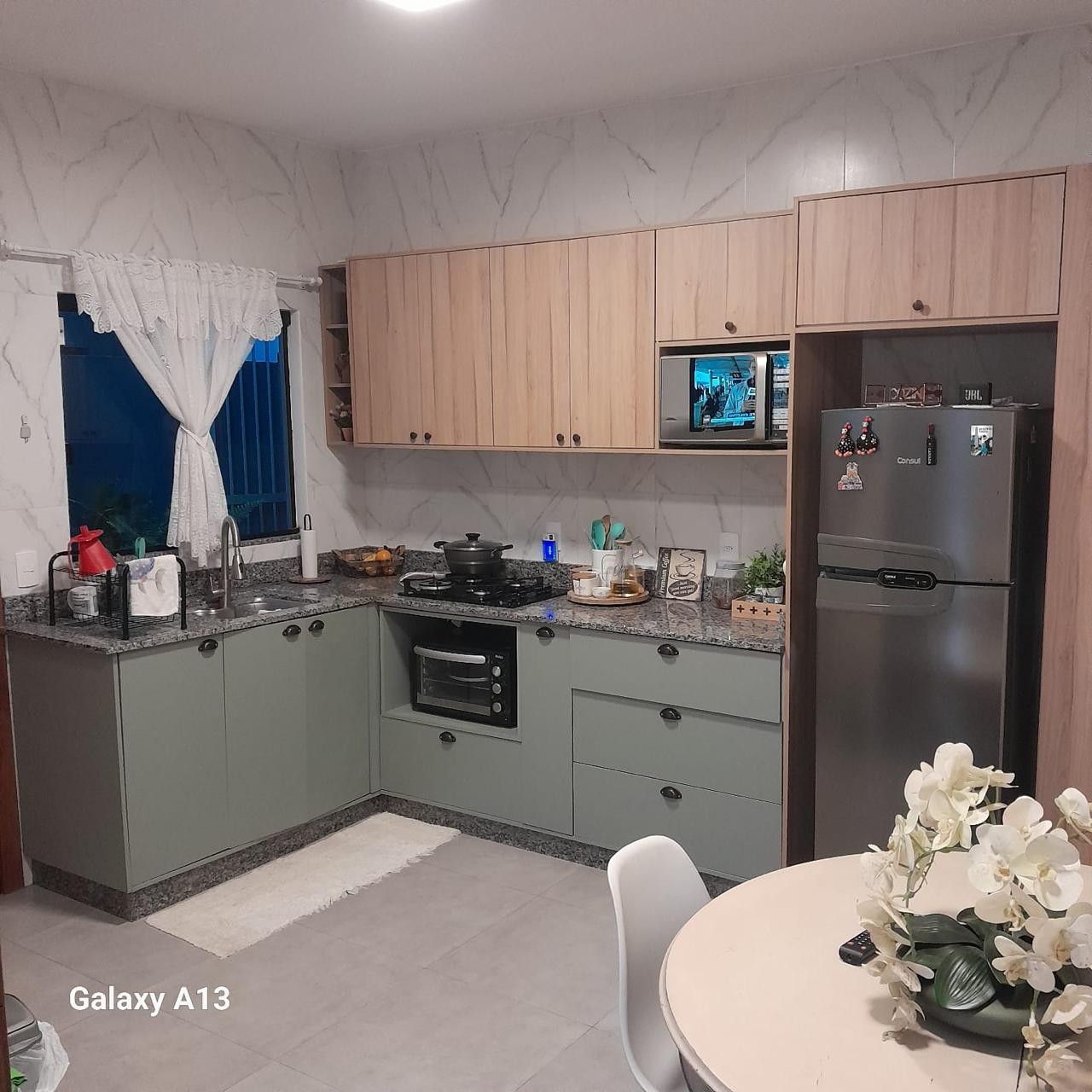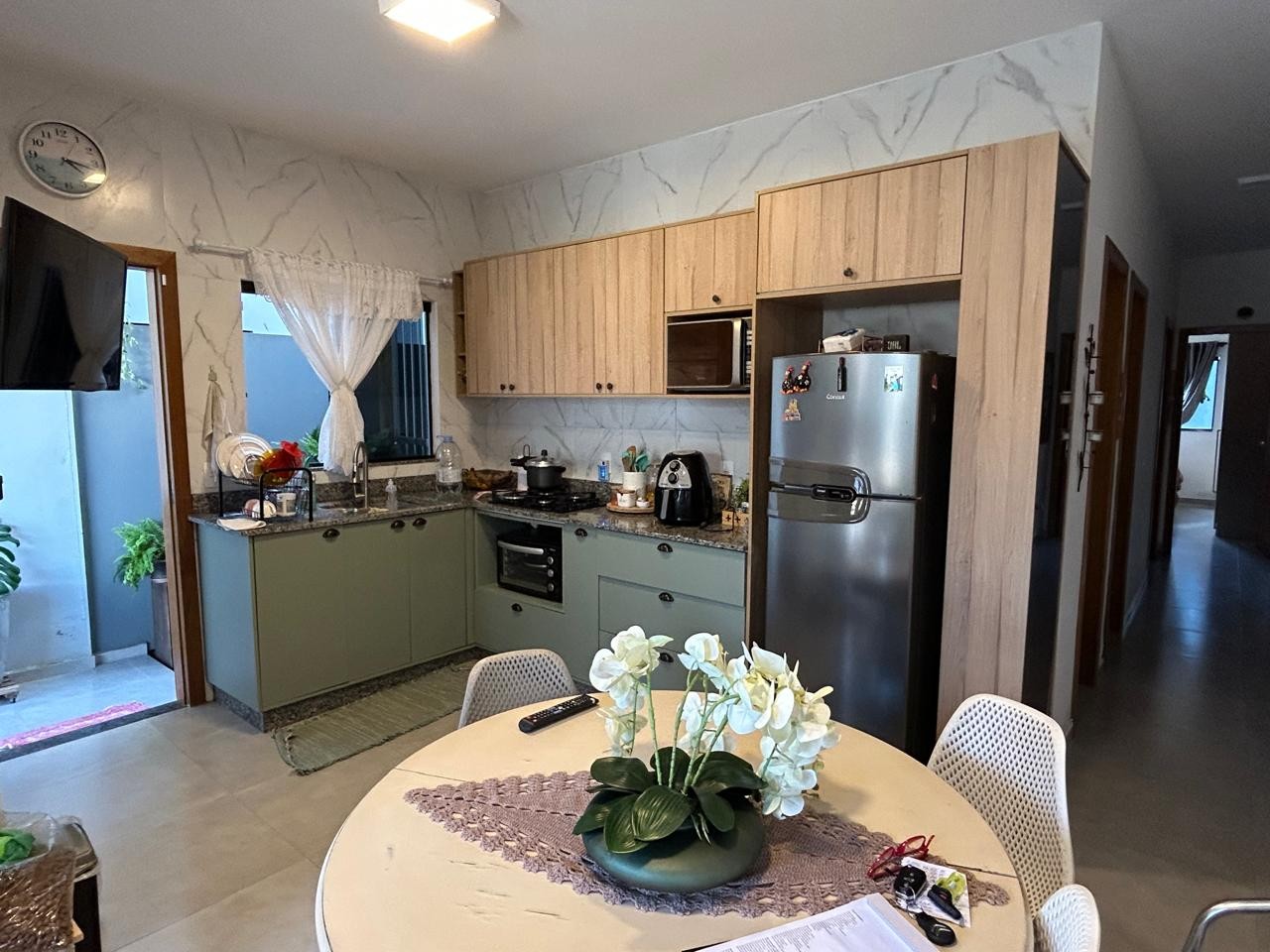 Sala e cozinha integrada, 03 dormitórios sendo 01 suíte, banheiro social, área de serviço, amplo espaço nos fundos para lazer ou até mesmo instalação de piscina, 2 vagas de garagem, sendo o portão com abertura para ambos os lados, com câmeras de segurança, toda murada e laje (caso queira fazer ampliação do imóvel possui estrutura).