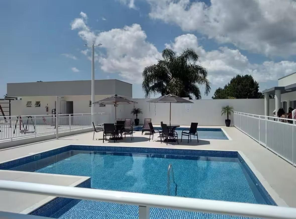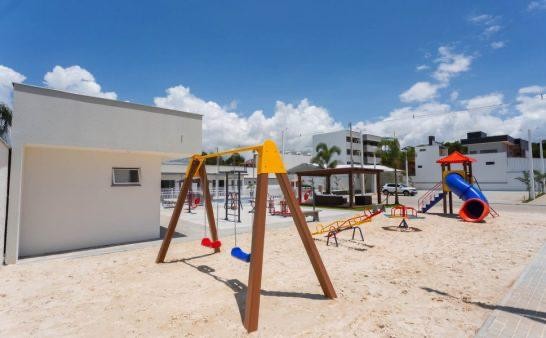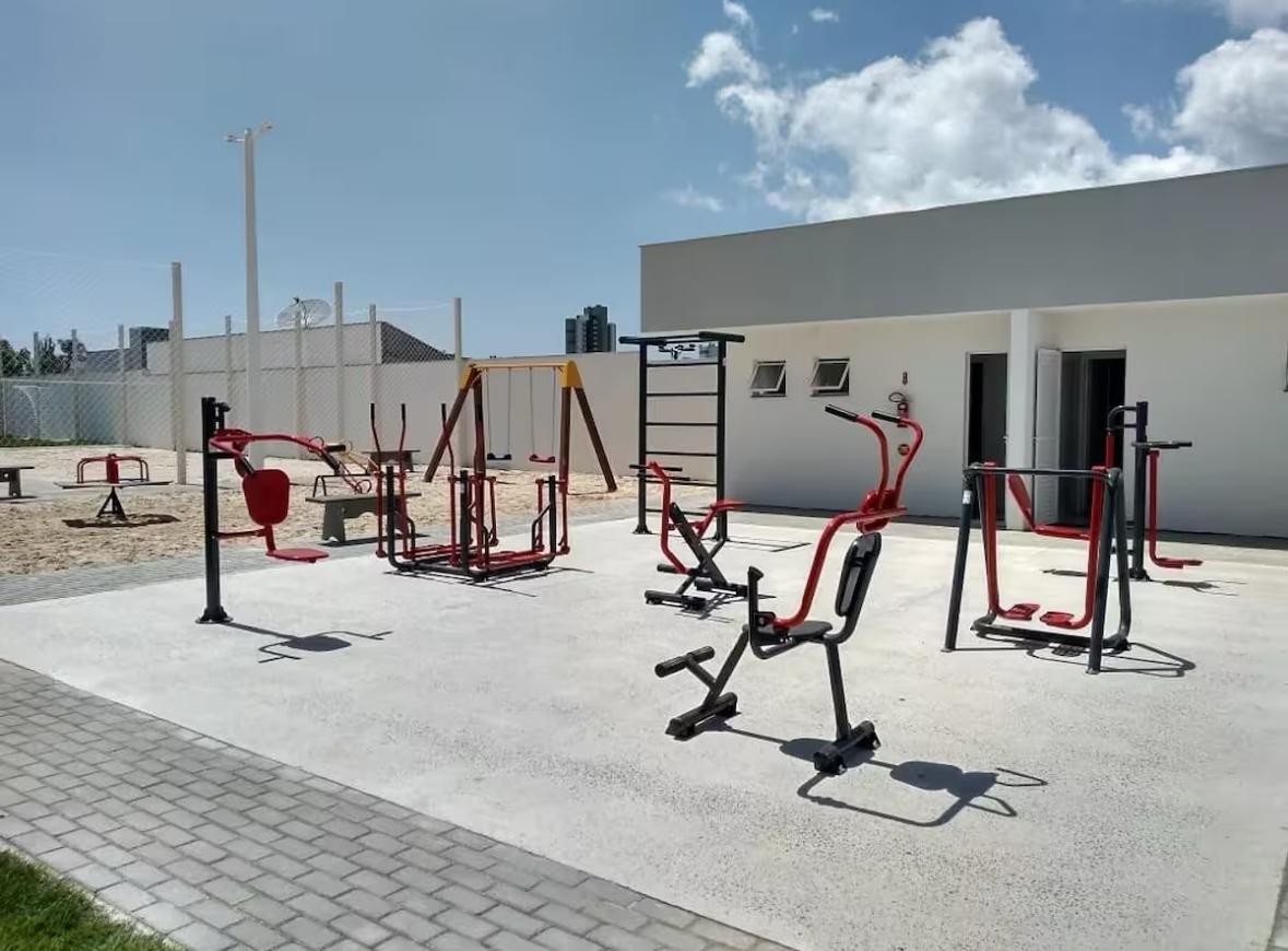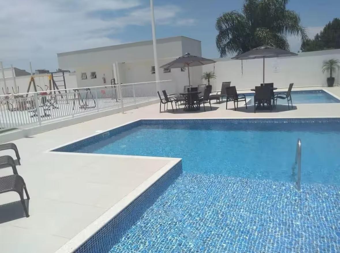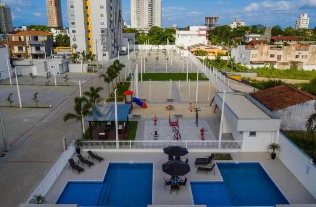 Sala e cozinha integrada, 03 dormitórios sendo 01 suíte, banheiro social e área de serviço e 02 vagas de estacionamento, 02 piscinas, Playground, Espaço Zen, Academia ao ar livre, Quadra poliesportiva.