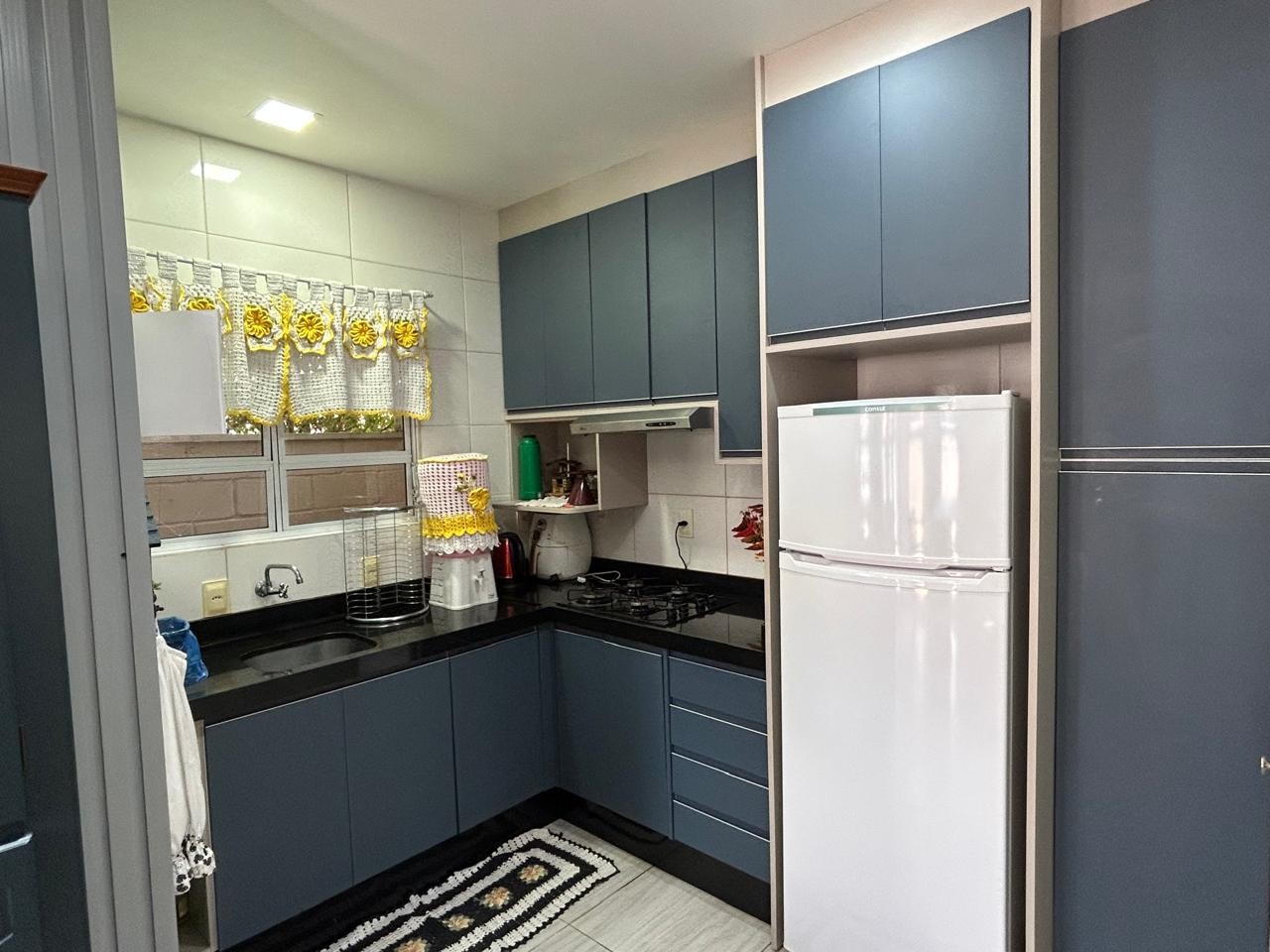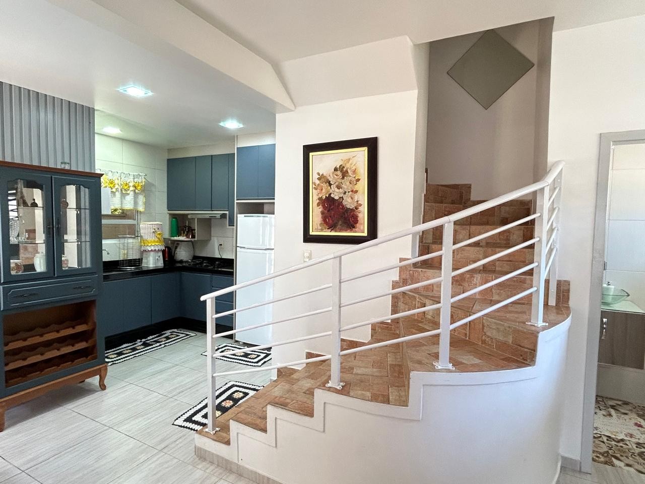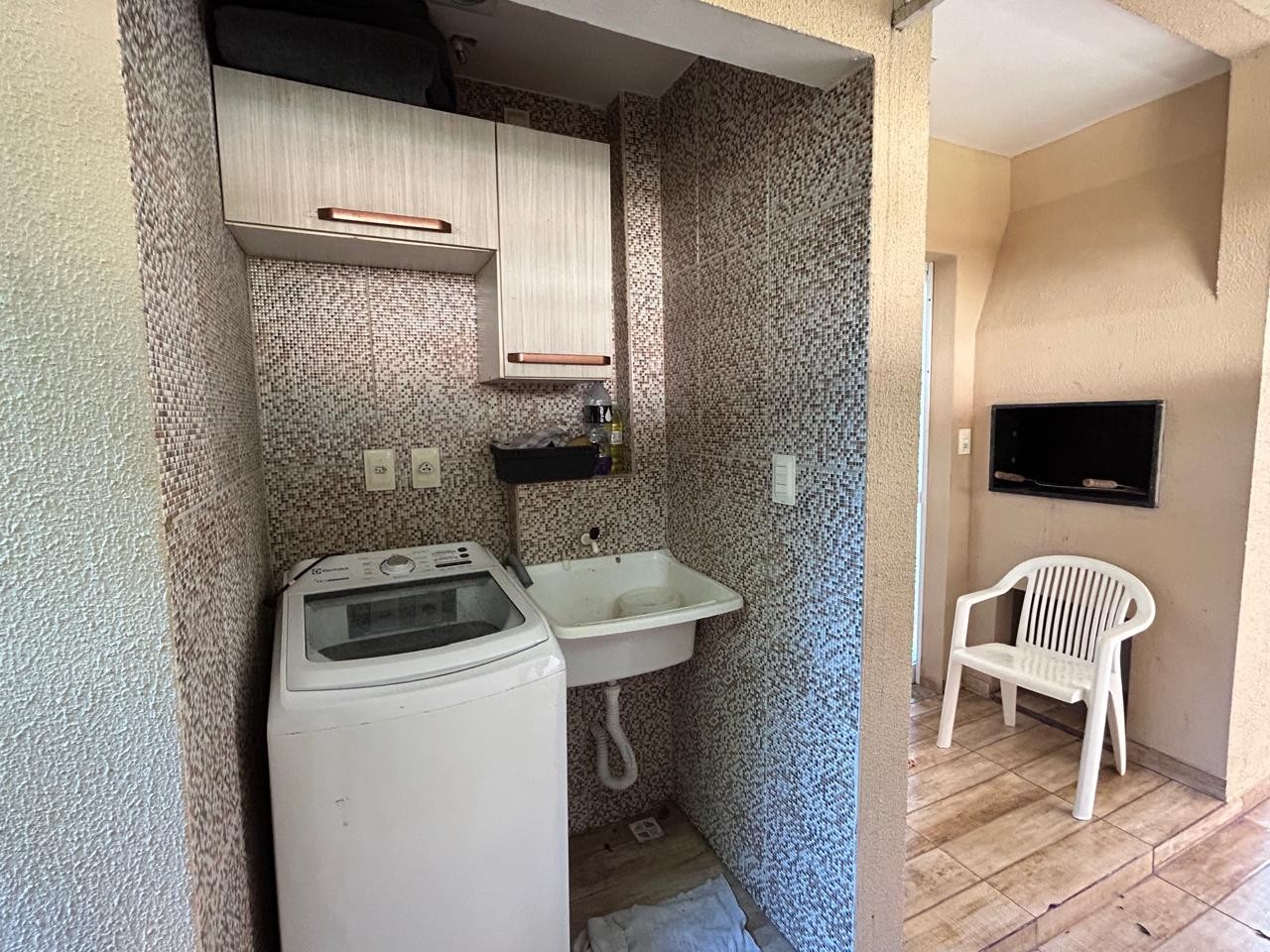 Sala e cozinha integrada com móveis planajados, 03 dormitórios sendo 01 suíte, banheiro social, área de serviço coberta na parte externa, churrasqueira a carvão, 1 vaga de garagem coberta e em rua calçada