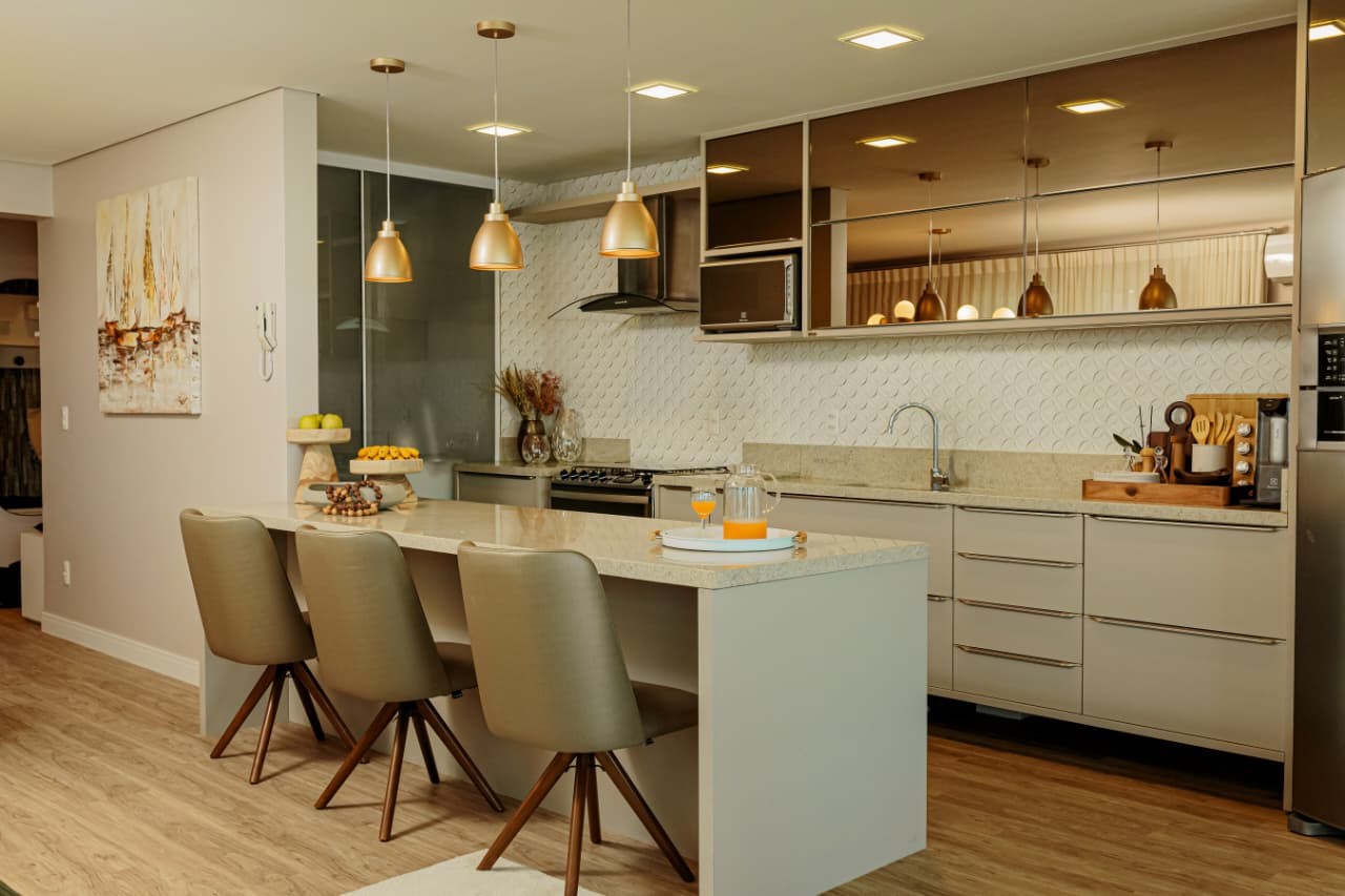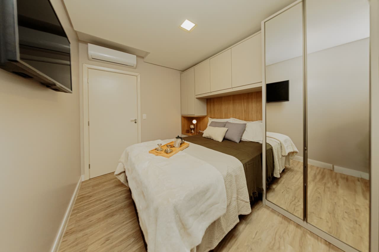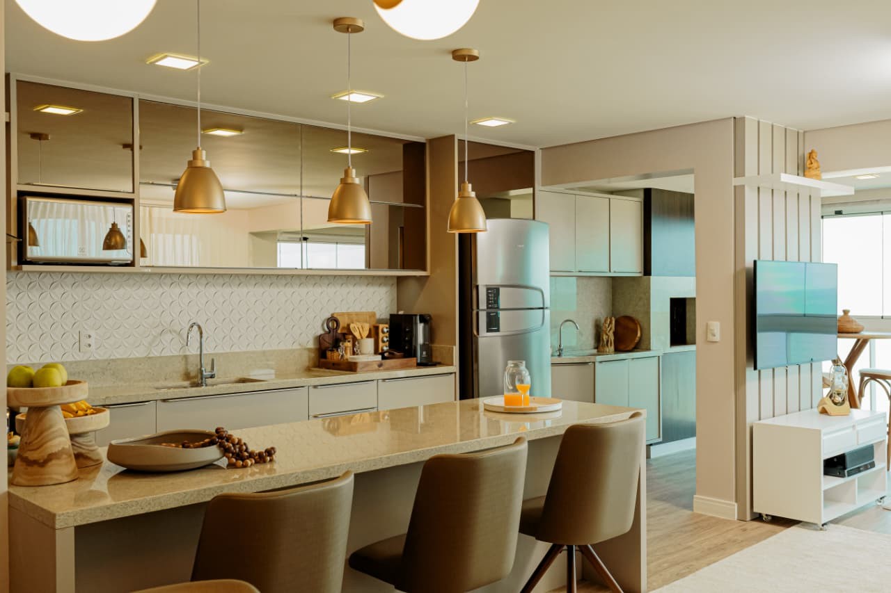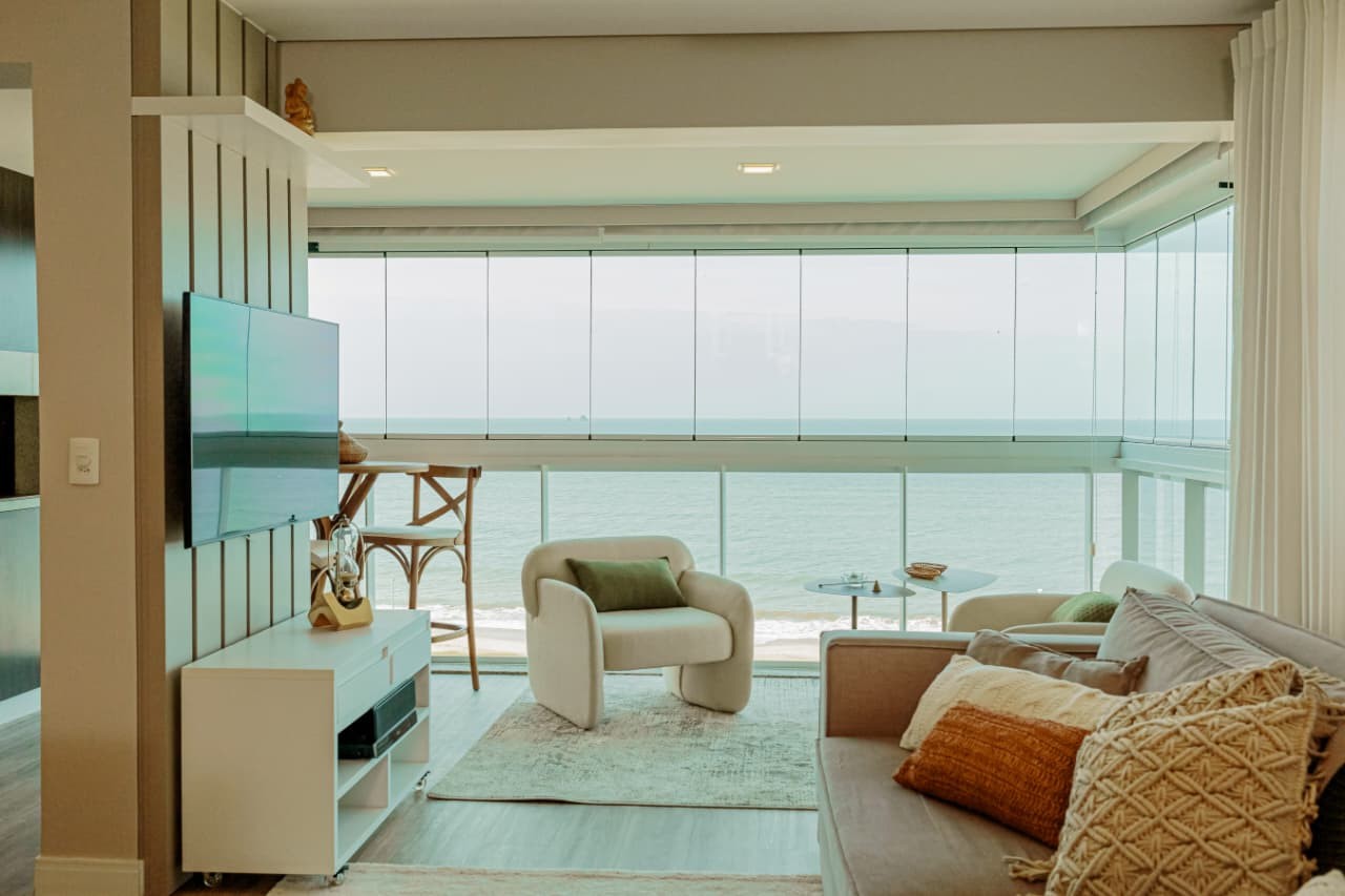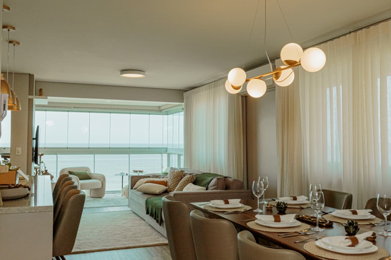 Acordar com o mar exatamente na frente da sua janela muda o ritmo do dia antes mesmo do primeiro café. Em Piçarras, no bairro Itacolomi, este apartamento de 121 m² entrega aquela sensação de pé na areia com a estrutura de quem busca moradia fixa e sólida. São três dormitórios, sendo uma suíte master, totalmente mobiliados e prontos para uso imediato. O imóvel, entregue em 2017, resolve a rotina prática com fechadura digital, ar-condicionado em todos os ambientes e uma cozinha planejada que se integra à sala. A varanda com churrasqueira a carvão e a jacuzzi privativa garantem o lazer particular, mas é a vista panorâmica permanente que sustenta o valor do patrimônio a longo prazo.