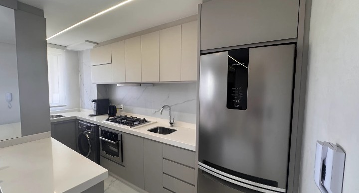 Acordar, abrir a janela e conferir as condições do mar antes mesmo de colocar o café na mesa. É essa a dinâmica de quem assume as chaves deste apartamento no Centro de Piçarras. Esqueça as reformas intermináveis ou a busca por móveis planejados que demoram meses para chegar. O imóvel foi entregue em 2022, está mobiliado e pronto para o uso imediato de quem não quer perder mais uma temporada de verão. Com 67 m², o espaço foi otimizado para funcionar: cozinha planejada integrada, acabamento em gesso e uma churrasqueira a carvão que realmente faz sentido no dia a dia.