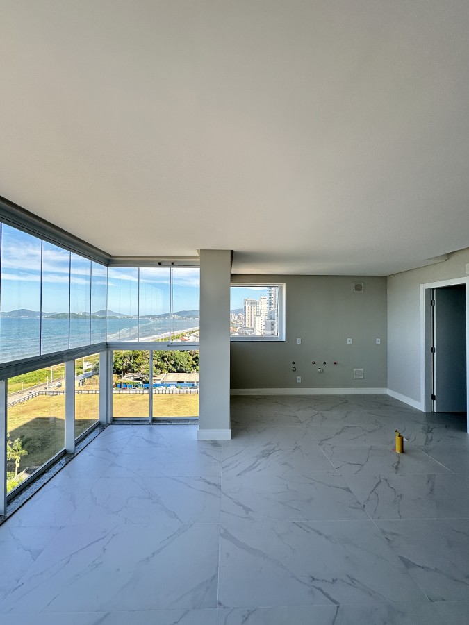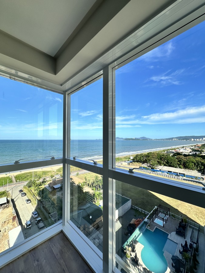 Abrir a porta e dar de cara com o mar de Piçarras, sem nada entre você e o horizonte, muda o peso do dia antes mesmo de você guardar as chaves. São 126 m² planejados para quem entende que espaço só faz sentido quando é bem aproveitado, com três suítes que garantem a independência de cada morador e uma varanda com churrasqueira a carvão feita para o uso real, frequente, de quem gosta de receber bem. A planta é fluida, integra sala e jantar de um jeito que a luz natural circula por todo o apartamento, reforçada pelo acabamento em gesso e pela infraestrutura técnica pronta, com esperas para split e aquecimento a gás já instalados. É uma estrutura sólida, entregue agora em 2025 no bairro Itacolomi, pensada para quem busca patrimônio físico em uma das regiões que mais ganham corpo e valorização no litoral catarinense.