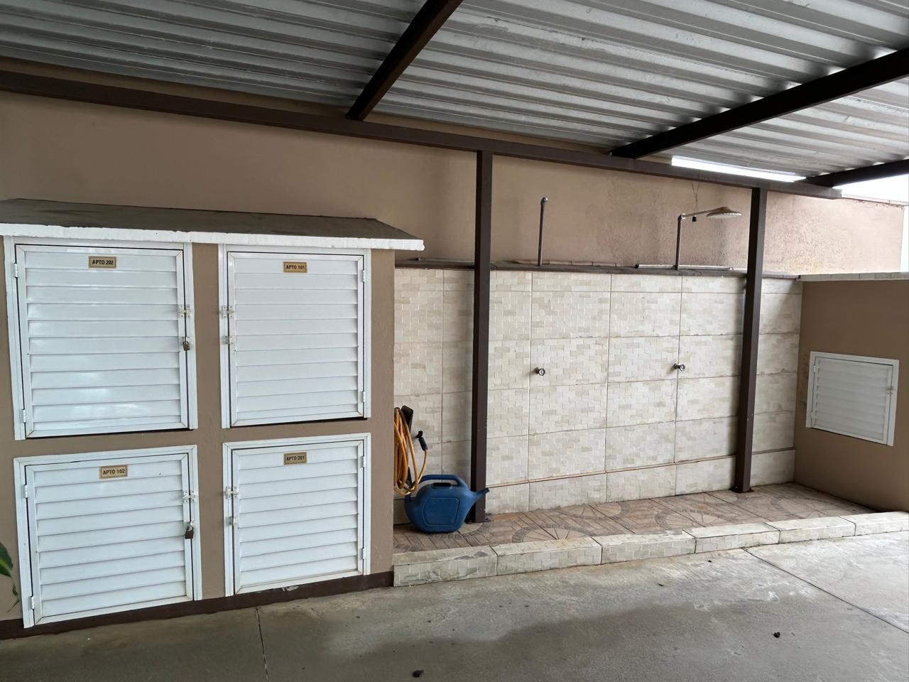 Sala e cozinha integrada, 02 dormitórios sendo 01 suíte, banheiro social, área de serviço na parte externa, sacada com churrasqueira e 1 vaga de garagem coberta em rua calçada e sem saída.