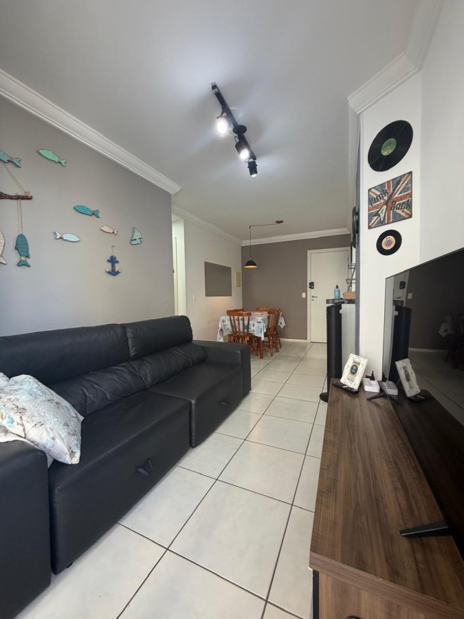 Apartamento a venda com 02 quartos, banheiro social, area de serviço, sacada com churrasqueira a carvão, cozinha planejada, móveis sob medida, imovel fica mobiliado, predio com elevador, salão de festas, piscina adulto e infantil. Portaria 24 horas, Proximo da Univali, supermercado Komprão, contorno sul, facil acesso a BR 101.